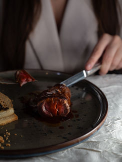 Nous aimons intégrer subtilement des mains, des silhouettes ou des gestes humains : servir un plat avec délicatesse, verser une sauce comme un geste de poésie, ajuster un détail qui change tout. Chaque mouvement raconte une histoire, et chaque plat devient un petit théâtre visuel. La figuration subtile, c’est notre façon de raconter l’histoire du plat.